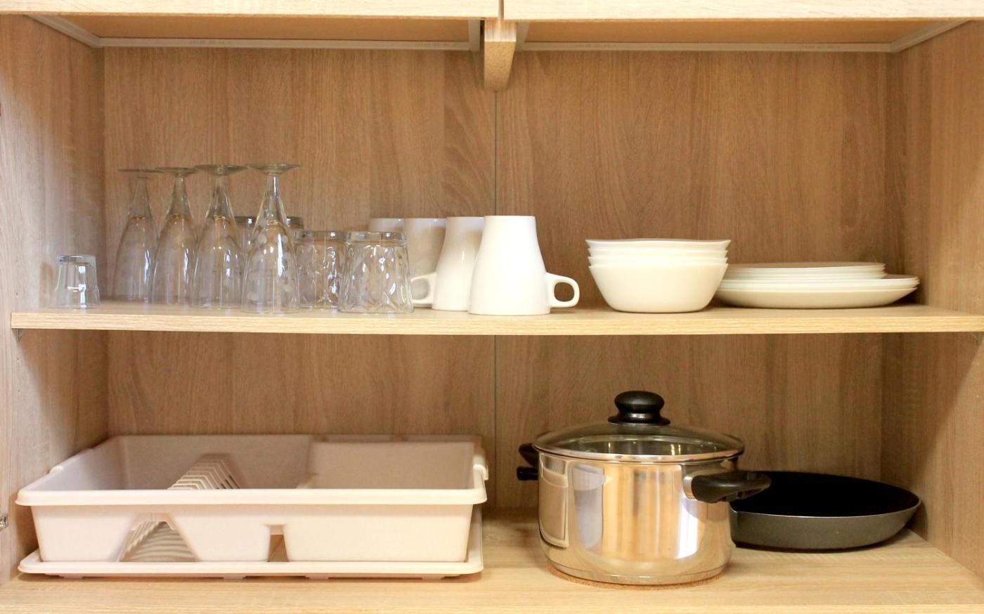 Studio Apartment. The air-conditioned apartment has 1 bedroom and 1 bathroom with a walk-in shower and a hairdryer. The well-fitted kitchenette features a stovetop, a refrigerator, kitchenware and a microwave. The apartment offers a tea and coffee maker, a wardrobe, heating, a flat-screen TV with cable channels, as well as ancourtyard view. The unit has 2 beds.